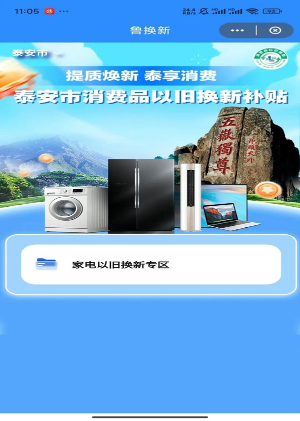 泰安市家電“以舊換新”補貼活動已正式啟動。廣大消費者可登錄云閃付APP“魯換新”小程序,領(lǐng)取補貼券